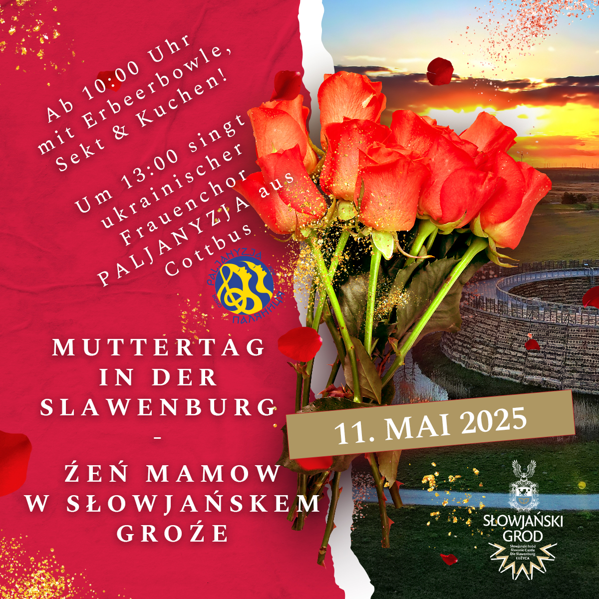 Am 1. Juni 2025 verwandelt sich die Slawenburg in Vetschau in einen bunten Ort der Begegnung! Von 10:00 bis 18:00 Uhr feiern wir den Kindertag des Friedens mit Hüpfburg, Bogenschießen, Eisenbahn und vielfältigen kulturellen Darbietungen aus verschiedenen Ländern.